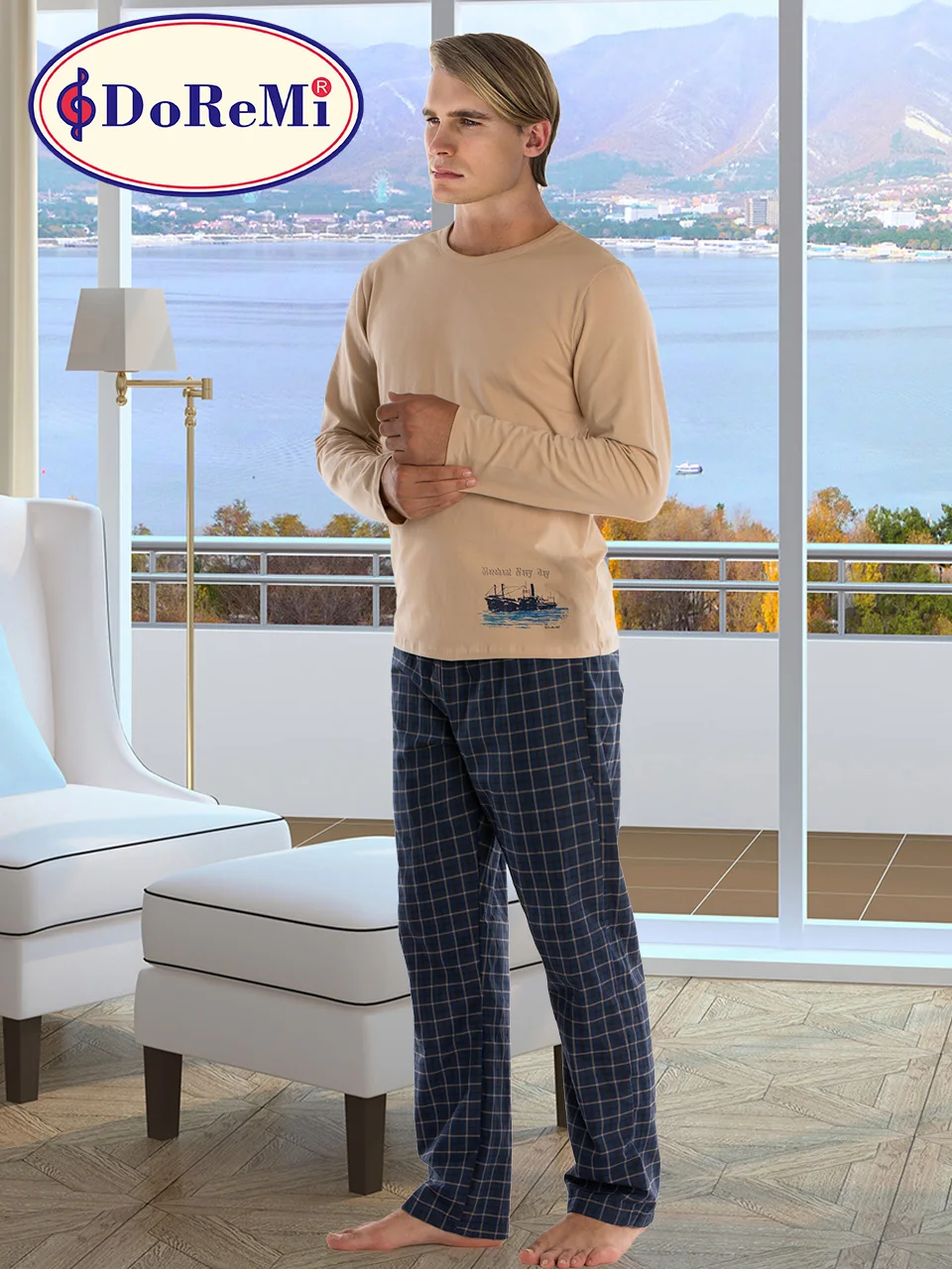 DoReMi Men’s Pajamas SetTOP: 95% Cotton 5% ElastaneBOTTOM: 65% Cotton 35% PolyesterDoReMi Pajamas Set for those who want to look both simplicity and stylish …DoReMi Men’s Pajama Set, which has an assertive color harmony, can be worn in four seasons with its soft combed comfortable and pocket-free lower track suit.It will reflect your print style at the top.All day long comfort with you DoReMi …Make your sleep enjoyable with comfortable cut pattern, long sleeve top pajamas.DoReMİ is the choice of men who do not compromise on their comfort and elegance …You will love DoReMi Men’s Pajamas Set with its elegant color and pocket detail.